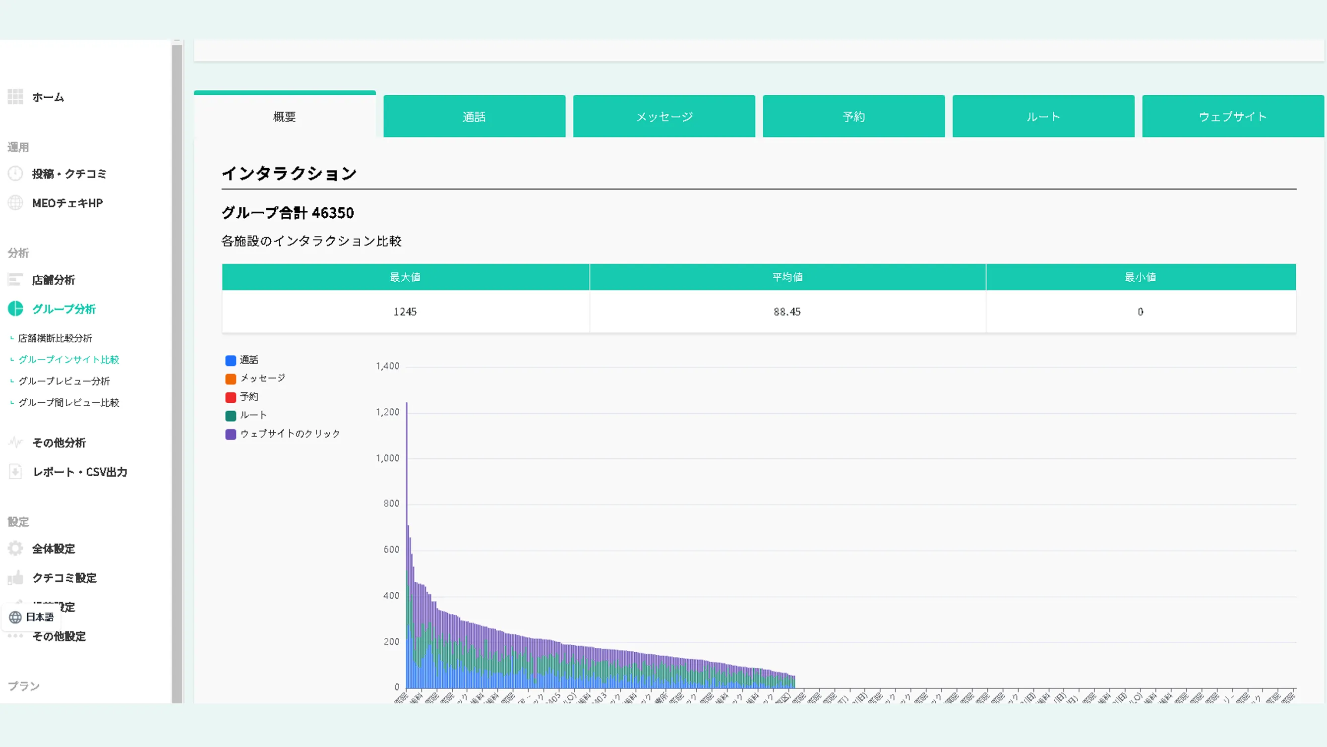 全店舗の順位データ比較やインサイトデータの比較も簡単に行うことが可能。