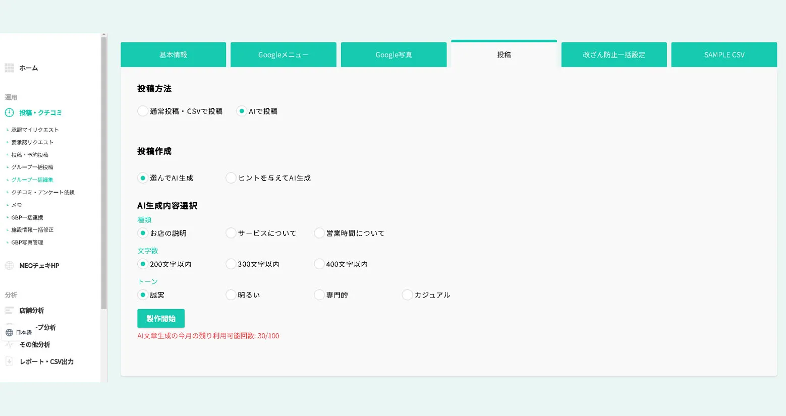 複数の店舗に一括でAI投稿・クチコミ返信も